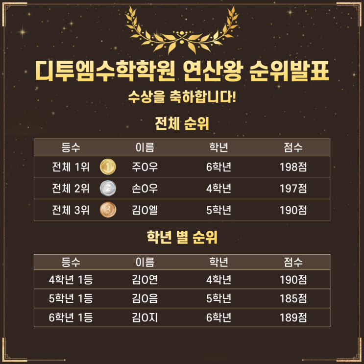 [학원소식] 송도파크자이 수학학원 제5회 연산왕 선발대회 수상 결과