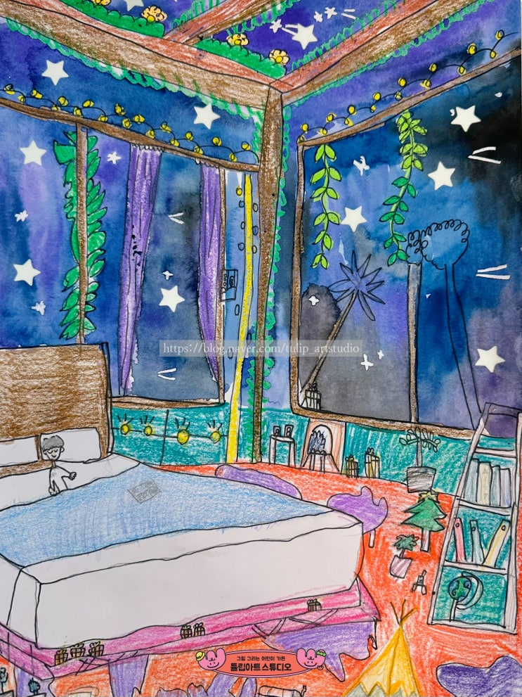 튤립아트스튜디오 <드로잉수업: 방에서 본 은하수>검단신도시 미술학원/ 검단신도시미술/ 아라동미술 / 원당동미술 /초등미술 / 아동미술