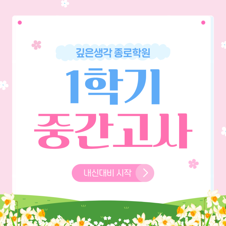 안녕하세요. 깊은생각 종로학원입니다. 어느덧 날씨가 많이 따뜻해지고 봄기운이 느껴지는 계절이 찾아왔습니다 곧 벚꽃도 피고, 나들이 계획도 많아지는 시기인데요. 하지만... 학생들에게 벚꽃의 꽃말은 '중간고사'라는 말도 있죠 다가오는 중간고사까지 약 한 달, 중고등 학생들에게 중요한 시험 기간이 시작됩니다. 그래서 저희 깊은생각 종로학원에서는 학생들의 내신 대비를 위해 철.저.히 준비하고 있습니다. 저희 학원에는 다양한 학교 학생들이 재원 중인데요. 특정 학교만 준비하는 것이 아니라 소수 인원이 있는 학교까지 포함하여 모든 학생들의 내신을 책임지고 관리합니다 저희 학원의 내신대비는 단순한 문제....... <img src="https://blogthumb.pstatic.net/MjAyNjAzMjVfMjA4/MDAxNzc0NDMyMjk5NzI5.1MoLi32QIb0aqPkZrUXd-w5C72c6twIBQs6EgWgM7ZIg.hAhyXj001-tkYVvtIJsxi2UoMeltIgxn5jyoSDnlOe8g.PNG/%C1%A6%B8%F1%C0%BB_%C0%D4%B7%C2%C7%D8%C1%D6%BC%BC%BF%E4._%2836%29.png?type=s3" />