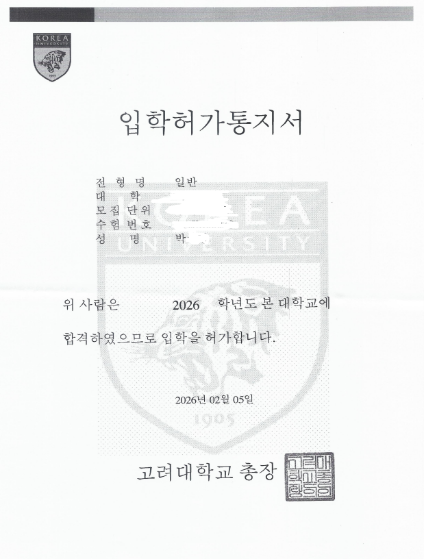 [재수] 정시, 고대 합격을 축하합니다.^^