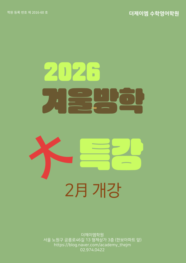 [공릉동 수학영어] 더제이엠학원 2026 2월 겨울방학 특강 안내