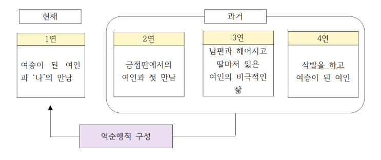 안녕하세요. 채원석학원 국어과 강사 김은일 선생님입니다. 오늘 함께 다뤄볼 작품은 [여승 - 백석] 입니다. 작품 이해 갈래:현대시, 자유시, 서정시 성격:애상적, 서사적 시점 : 1인칭 관찰자 제재:여인의 일생 주제:한 여인의 비극적인 삶 특징 : - 회상적인 어조로 표현 - 역순행적 구성 - 시상의 압축과 절제 시상의 흐름(짜임) 1연 : 한 여승과 오랜만에 만남 2연 : 평안도 어느 금점판에서 옥수수를 팔 던 여인을 처음 만남 3연 : 가난으로 남편과 헤어지고 딸마저 잃게 된 여인의 힘겨운 삶 4연 : 여인이 삭발하고 여승이 됨 시의 구성 시어 및 시구의 함축성 * 가지취의 내음새가 났다 → 여승이 이미 속세를 떠나 있음을 보여 줌. 후....... <img src="https://blogthumb.pstatic.net/MjAyNjAzMDJfMTU4/MDAxNzcyNDQ1NjM1MjUx.rCEHqFZgH7gTg0_Cd0OWnshW8ftgi2QpIMOW-Fv05m8g.jXt6UZGi_eVarpdsHNPjoGI4HveNgIwx95eiqlQeMjEg.PNG/KakaoTalk_20260302_190024033.png?type=s3" />