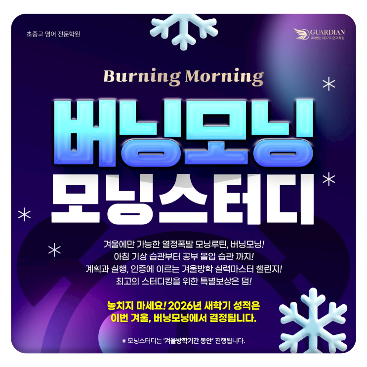 가디언어학원 모닝스터디 & 겨울 방학특강