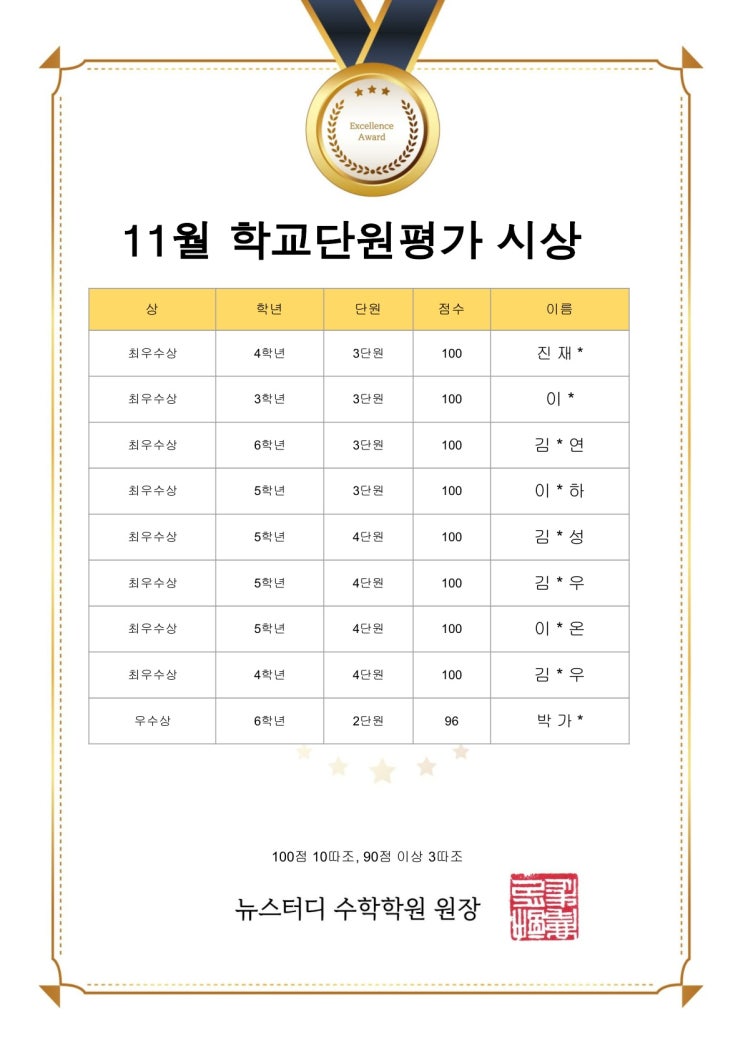 [등마초수학학원 등촌초수학학원] 11월 우수학생 시상
