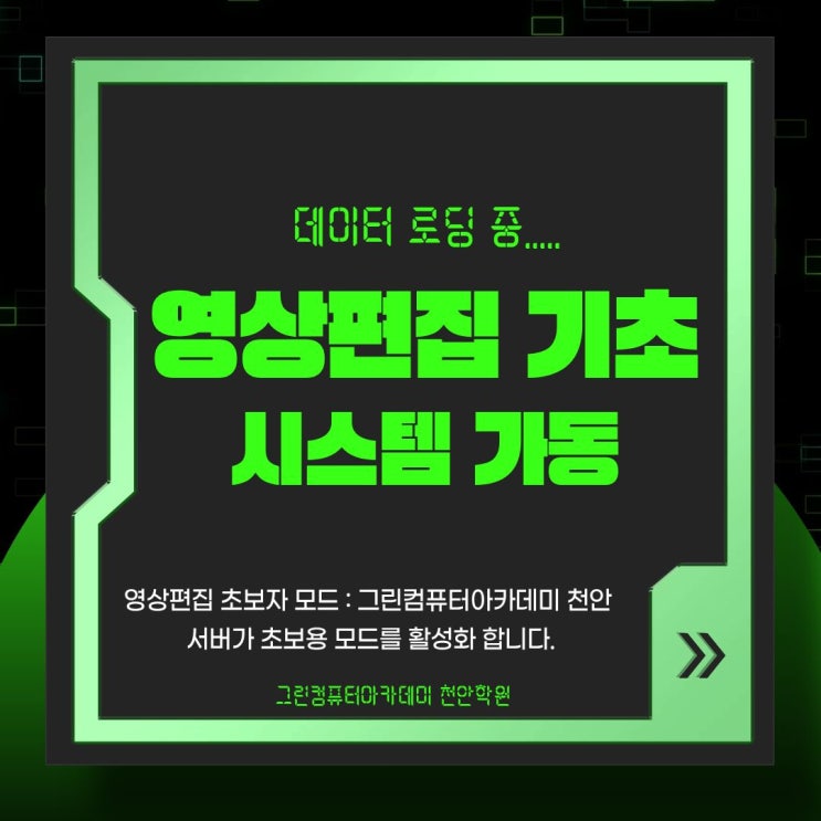 안녕하세요. 그린컴퓨터아카데미 천안학원입니다! 매일 똑같은 일상, 커리어에 대한 고민 있으신 분들 많으시죠? 오늘은 내 삶에 활력을 불어넣을 수 있는 "영상 편집"과정에 대해 소개하도록 하겠습니다! 프리미어 프로 어도비사의 영상편집 프로그램으로 영상, 소리, 자막 작업을 하여 하나의 영상으로 만드는 도구입니다. 컷편집, 자막작업, 오디오 삽입, 오디오 텍스트 변환 등 애프터 이펙트 프리미어와 같이 자주 사용되는 어도비사의 프로그램으로 영상에 생동감 있는 효과부여와 화려한 시각효과를 줍니다. 애니메이션, 화려한 오프닝, 특수효과, CG, 합성 등 다양한 분야 진출 영상을 배우면 단순히 '편집자'만 되....... <img src="https://blogthumb.pstatic.net/MjAyNjAyMDZfMjc5/MDAxNzcwMzU3OTY4OTc1.d1Qkw2ZceKufvA9bhd9o-Y12GQlcWUXUz77Tpaxu7bIg.j_SGHP4ZvR42CpCJa2pQ4WENFXMaxb1rhfl98sLD_hkg.JPEG/1.jpg?type=s3" />
