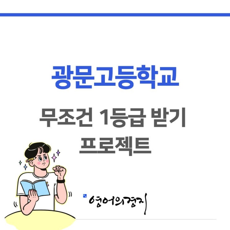 안녕하세요. 영어의 경지 블루마블T입니다. 이번 글은 광문고등학교 내신대비에 관한 글입니다. 우리 예비고1 학생 여러분들의 영어 내신성적 향상에 도움이 되면 좋겠습니다. (모든 내용 훑어보시면 좋겠지만, 시간 없으신 분들은 [요약]만 보세요 ^^) 다음의 내용들은 암기하는 방법과 요령에 관한 글입니다. 암기에 대해서 부정적인 의견을 가지신분들의 의견도 존중합니다. 이 글은 단기간에 암기를 통해서 점수를 조금이라도 올려보고자 하는 학습방법에 관한 글임을 말씀드립니다. 블루마블의 한마디 위의 [요약]에서의 영어 내신대비 방법은 단기적으로 대량의 암기를 통해 점수를 끌어 올리는 방법입니다. 따라서, 엄청난 집중력과 인내....... <img src="https://blogthumb.pstatic.net/MjAyNjAyMTRfMTAw/MDAxNzcxMDQxMjg4MDg4.Hce6Rpmi-p1AGRH_pIz0HCDXx9z8pTQYPNz4PLnFBYgg.29ojcz6OnNHHKWT3tEZfGH3xdKdPwr247ZuGCorApqwg.JPEG/%BF%B5%BE%EE_%281%29.jpg?type=s3" />