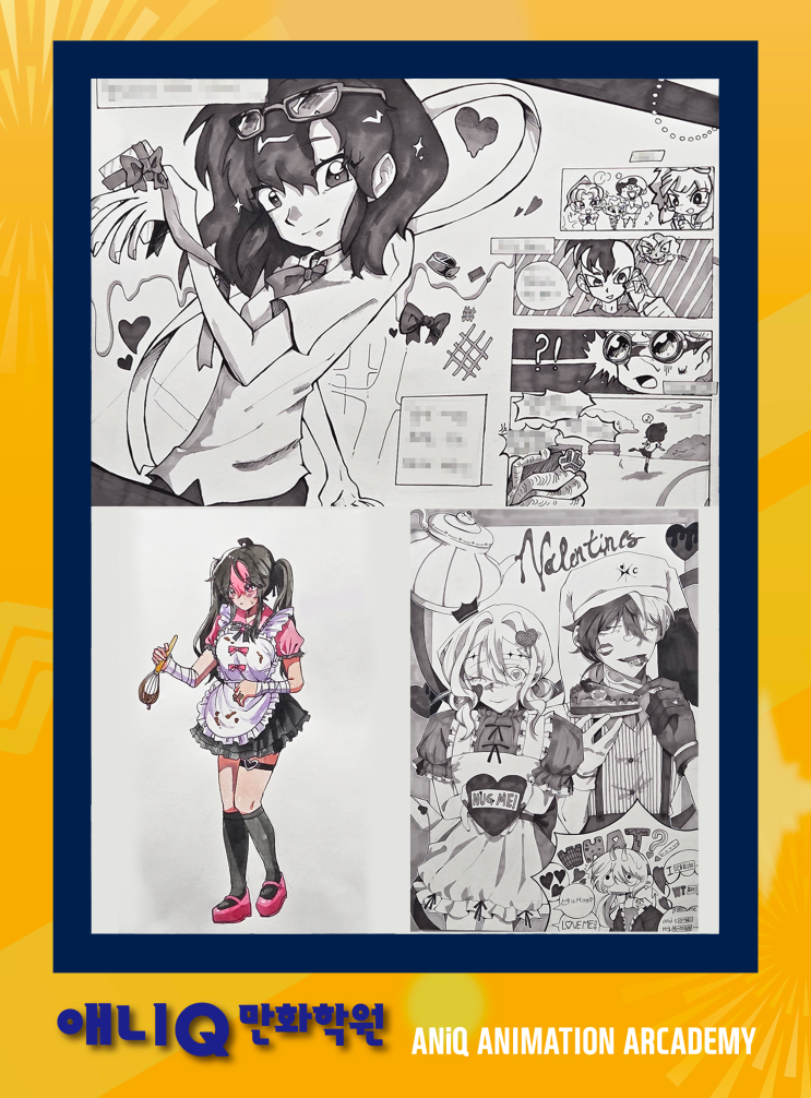 안녕하세요!! 당진 만화학원의 대표주자 애니큐 만화학원 입니다!! 2월 14일은 발렌타인데이! 누군가는 사랑하는 사람에게, 누군가는 친구에게 초콜릿을 전해주며 행복한 시간을 보내는 날입니다. 저희 학원 학생들도 학원에 나와서 서로서로 초콜릿을 나눠 먹으며 달콤한 시간들을 보냈습니다. 오늘은 발렌타인데이를 기념하여 그린 학생들의 멋진 작품들을 보여드리겠습니다! 초콜릿을 전해주는 것에서 그치지 않고 이를 모티브로 학생들의 개성이 들어간, 초콜릿만큼 달콤한 다양한 그림들입니다! 특별한 날에만 달콤한 것이 아닌 앞으로의 일들, 학생들의 노력들도 달콤하게 느껴졌으면 좋겠네요! https://naver.me/FhfRZb0O 칸만화부터 상황....... <img src="https://blogthumb.pstatic.net/MjAyNjAyMTVfMjIx/MDAxNzcxMTMwNTk1MDU2.REW3GbvM2LNK1HEzk8r24l-sGlIJKjh7BhvgruwSNdwg.J6L3v4MXbIrNId7oFRQHlJ9HNW0y3oP1kTHmbficiOAg.PNG/%B9%DF%B7%BB%C5%B8%C0%CE1.png?type=s3" />