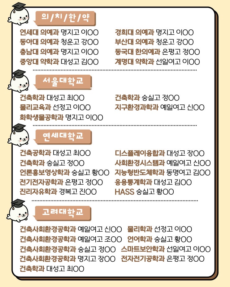 안녕하세요! 퍼씰수학전문학원입니다. 오늘 포스팅은 학생 / 학부모님들께서 가장 궁금해하고, 관심 가질만 한 주제로 준비해보았는데요! 바로바로~ 2026학년도 퍼씰 대입 합격 결과 입니다! 3년이란 긴 시간 동안 흔들림 없이 자신을 믿고 달려온 우리 학생들 그 인내의 끝에 마주한 당당한 합격의 명단을 공개합니다! 이전에 포스팅 했던 졸업생 후기와 함께보면 더욱이 와닿으실 것 같은데요! 아직 졸업생 후기를 보지 않으셨다면! 함께 보시는 것도 추천드립니다! https://blog.naver.com/furseal9101/224174112126 퍼씰에 대해 더 궁금하다면? > 퍼씰 홈페이지 구경하러 가기 > 퍼씰 인스타그램 팔로우하기 > 오픈 채팅 문의하기 &....... <img src="https://blogthumb.pstatic.net/MjAyNjAyMDhfODkg/MDAxNzcwNTM5MTc2Njgw.opXFJ2t9oaAjNR3JJOckA94ayyNDivzr8hXHtRVLtdQg.8mhSzYjwUzIPbvunL19vXkBJRN3IsekE53hH6lM6E14g.JPEG/2.jpg?type=s3" />