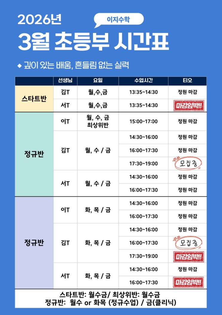 [3월] 신길 이지수학 초등부 시간표