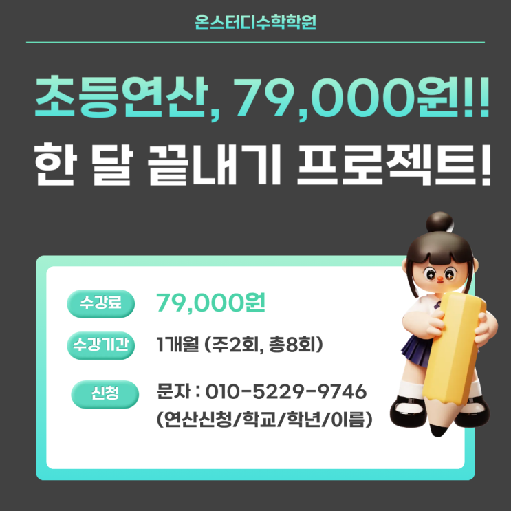 경산 옥곡동 수학학원, 초등연산 79000원!! 한 달 끝내기 프로젝트!