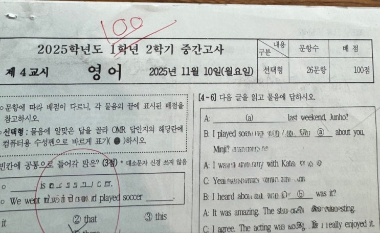 #가오동영어잘가르치는학원#가오동영어학원#가오동중등영어#가오중영어#은어송중영어 #대전중영어 #충남중영어 #대전여중영어 #한밭여중영어 #용운중영어 가오중 영어 내신은기초력 + 적용력이 승부를 가른다” 이번 시험이 보여준 메시지는 명확합니다. ▶ 단순 암기형 접근으로는 고득점 지속이 어렵습니다. ▶ 교과서 문장 이해와 실용문 적용, 대화문 패턴 훈련이 핵심 경쟁력입니다. 프라우드 영어학원은 교과서와 시험의 연결 지점을 체계적으로 파악하여, 학생이 ‘실전에서 바로 쓰는 영어력’을 완성하도록 지도합니다. 다음 기말고사 또한 동일한 흐름의 문제들이 출제될 가능성이 매우 높습니다. 우리 학원은 모든 학생이 고득점을 얻....... <img src="https://blogthumb.pstatic.net/MjAyNTExMjNfNDQg/MDAxNzYzODkwMjMyOTU3.9Q6TWwWB38_yTNd7pa_wcatu7orUmIe9tuAZrbf94fAg.BKKbRrcR4hyox-vnI4Jz2F8gadrqYTAN36zTFggs0jEg.JPEG/IMG%A3%DF6190.jpg?type=s3" />