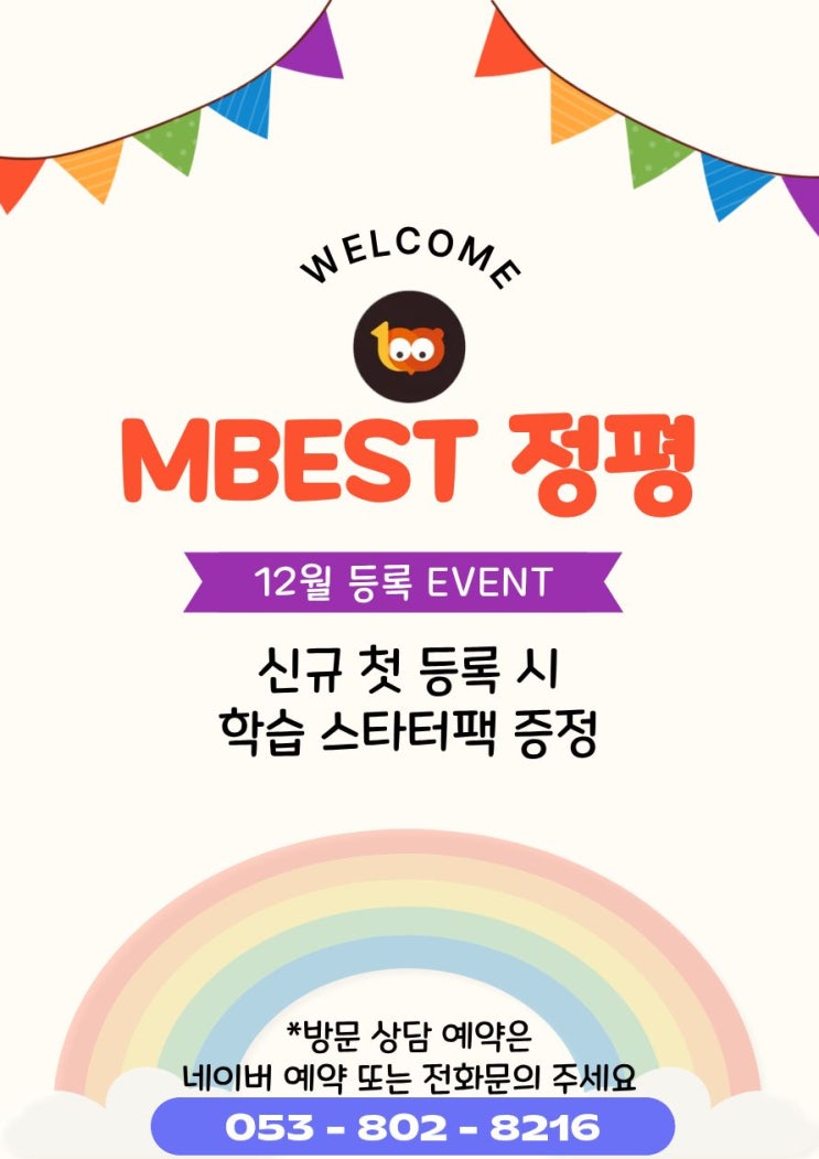 안녕하세요! 엠베스트SE 정평학원 입니다❤ 12월을 맞이하여 등록 이벤트 진행합니다 12월에 함께 공부 시작하는 신규 친구들에게 학습 스타터팩 증정! 뭔지 궁금하시다구요?! 엠베스트SE 정평학원으로 오세요! 경북 경산시 강변서로 51길 25, 2층 053-802-8216 엠베스트SE정평학원, 경산교육청등록번호 1230호 파닉스과정 주5회/4주/총1100분 100,000 초등 단과 - 영어,수학 주5회/4주/총1200분 190,000 국어,사회,과학 주2회/4주/총560분 90,000 초등 종합 - 국어,영어,수학,사회,과학 주5회/4주/총2800분 450,000 중등 단과 - 영어,수학 주5회/4주/총1400분 220,000 국어,사회 주2회/4주/총640분 120,000 과학 주3회/4주/총900분 170,000 중등....... <img src="https://blogthumb.pstatic.net/MjAyNTExMjVfMTk5/MDAxNzY0MDU2MzQ4MjQ3.qwrPXj-ZlxQon_69AbCfFSe7qN3vP7QdwGRgMyY2S-kg.igW8tyuE7ezPtv8YD-5_NGiiT-JyoQ9FZahFXKNGCVIg.JPEG/%C1%A6%B8%F1%C0%BB_%C0%D4%B7%C2%C7%D8%C1%D6%BC%BC%BF%E4.jpg?type=s3" />
