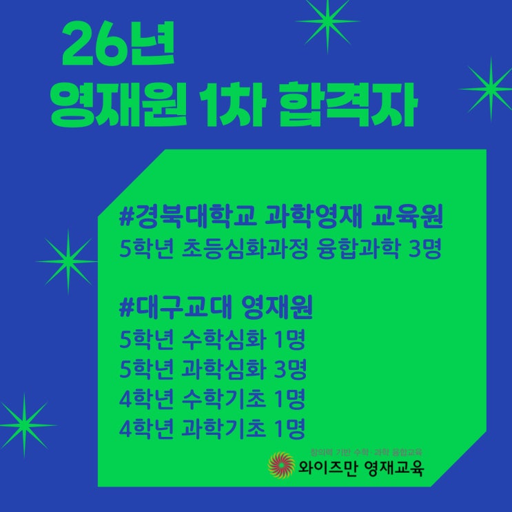 2026년 경북대학교 및 대구교대 영재원 1차 합격 축하합니다!