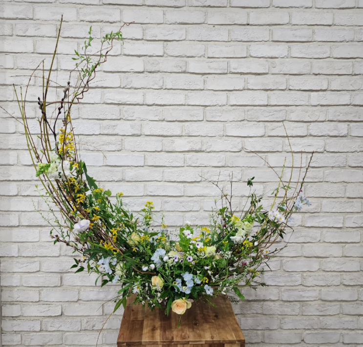 디자인 플로리스트 정규과정 황금비율 초승달형 꽃꽂이 초승달형 꽃꽂이는 곡선 구도를 습득하기 위한 기초 화형입니다. 주요 재료명 ① 노랑 말채나무 Cornus sericea ② 곱슬버들 Salix matsudana ③ 찔레 Rosa multiflora ④ 너도밤나무 Fagus multinervis Nakai ⑤ 메리골드 Tagetes erecta ⑥ 소국 Chrysanthemum mortifolium ⑦ 쑥부쟁이 Aster ypmena(Kitam.) Honda ⑧ 리시얀샤스 Eustome grandiflorum ⑨ 남천 Nadina domestica ⑩ 멜라루카골드 Melaleuca bracteata ⑪ 천일홍 Gomphrena globosa L. ⑫ 에린지움 Eryngium planum 등 다양한 재료들을 사용했습니다. 초승달형 꽃꽂이를 할 때에는 줄기가 부드러운 재료를 선택하는 것이....... <img src="https://blogthumb.pstatic.net/MjAyNjAzMDJfMjQg/MDAxNzcyNDE4MTMyOTM5.zjRcmMdrA-X3h5dw42qhMMfMB5pZbSkeWC-2gHgJ8Vkg.eSFv5UARnYVVAywrBxHDkE8CSPUhseDHfJinql_w-l4g.PNG/1.png?type=s3" />