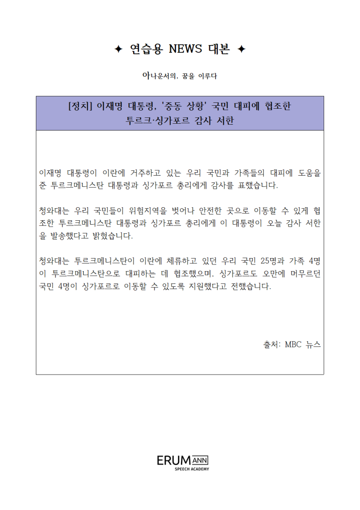[뉴스대본] "이룸의 2026년 3월 2주차" 연습용 NEWS 대본