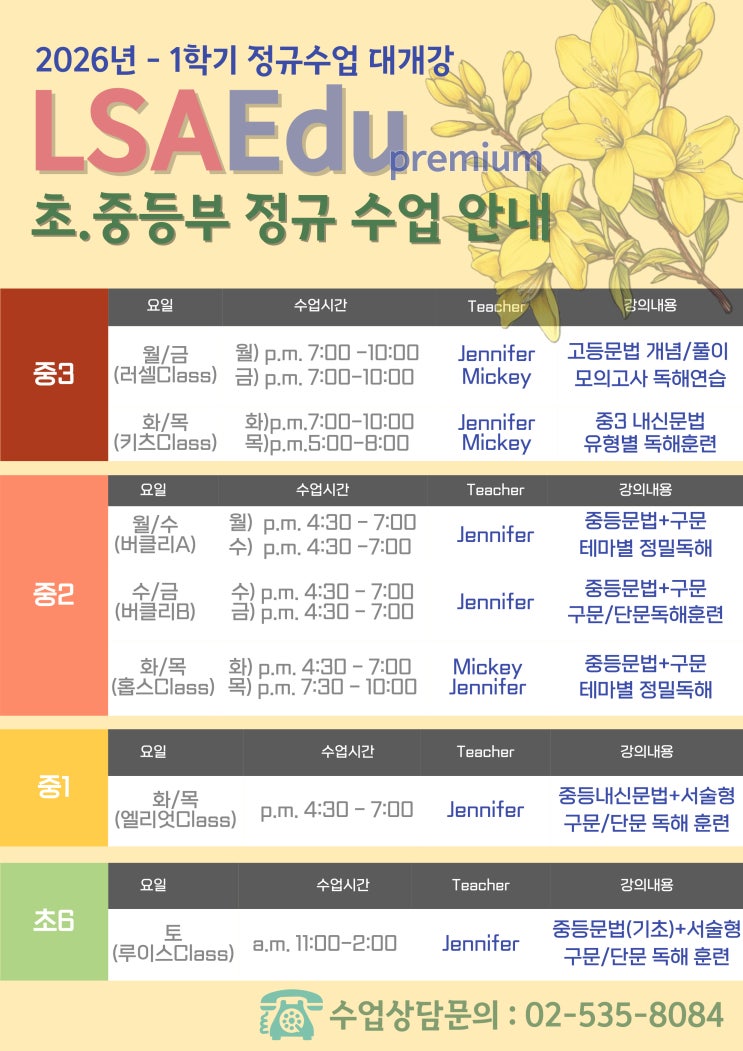 [LSAEdu] 26년도 1학기 초.중 정규수업 안내