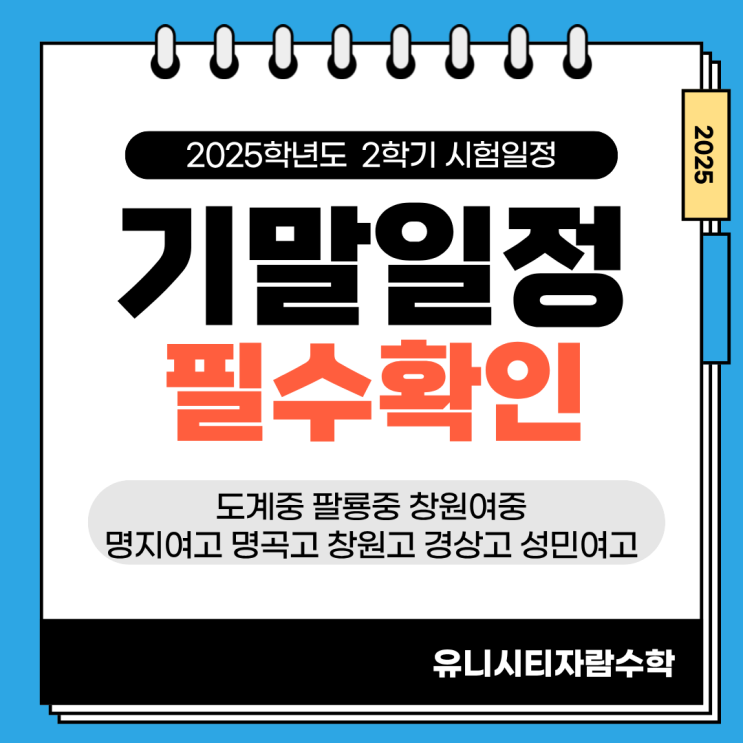 유니시티 수학 2학기 도계중 팔룡중 창원여중 명지여고 명곡고 창원고 경상고 성민여고 기말고사 일정