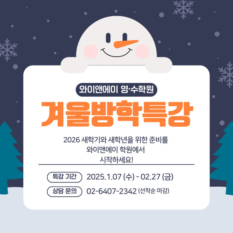 와이앤에이 영·수학원 2025년 겨울방학 특강