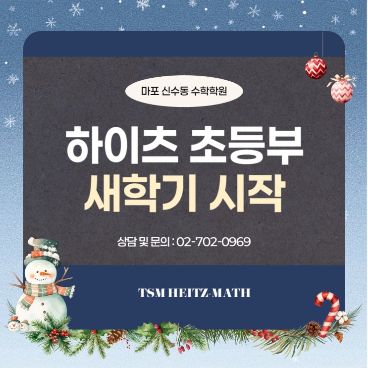수학 때문에 꿈을 포기하는 것이 아니라 수학 때문에 꿈을 이루게 하는! 마포구 신수동에 위치한 초·중·고 수학전문 하이츠 수학학원입니다. 하이츠수학학원 초등부가 한 학기를 무사히 마무리했습니다. 아이들은 매 시간 성실하게 참여하며 조금씩, 하지만 꾸준하게 성장해 왔습니다. 교실 곳곳에서 문제를 이해해 가는 과정, 틀린 문제를 다시 도전하며 태도가 달라지는 모습 등 한 학기 동안의 변화가 분명하게 느껴졌습니다. 그리고 서로를 응원하며 자라는 모습 덕분에 한 학기 내내 미소가 끊이지 않았습니다. 작은 응원, 따뜻한 간식 포장 이벤트 학기 마지막 주에는 열심히 달려온 아이들에게 고마움과 응원을 전하고 싶어....... <img src="https://blogthumb.pstatic.net/MjAyNTEyMDRfMTUg/MDAxNzY0ODA0ODg4MDk0._4NjVPER6QahPiNOzesRZ7NhqlZSW0ez6IGlSl6oobgg.dq3uv2FZClbQj7qR8ggVSn1eeAuVbb1EgdJFREpmD_Ug.JPEG/%B8%B6%C6%F7%BD%C5%BC%F6%B5%BF%BC%F6%C7%D0%C7%D0%BF%F8_%282%29.jpg?type=s3" />