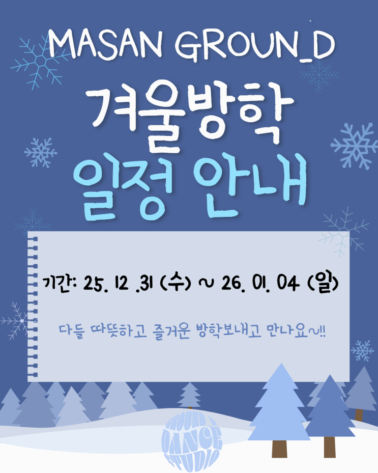 [ 마산댄스 / 마산그라운디 ] ⛄️ 마산 그라운디 겨울방학 휴무 안내 ☃️