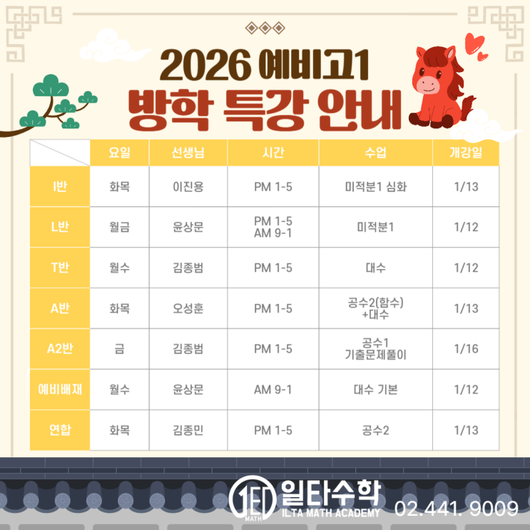 새로운 시작을 앞에 두고 긴장과 두려움, 설레임이 함께 하는 겨울방학입니다. 고등학교 성적에서 큰 부분을 차지하는 수학!!!! 이번 겨울 방학은 수학 공부에 최선을 다 하고 든든한 마음으로 새 학기를 맞이해 볼까요??? <img src="https://blogthumb.pstatic.net/MjAyNjAxMDlfMjky/MDAxNzY3OTI2NzQxOTYy.d-yC1T5aRiB5LJlZr6EB5r8uGrgGZV28P0h5fyM58DQg.PPPM1OL99ZU4FBBEfOGWQL9KQpeANazRtQ7Lae20o5Mg.PNG/%BF%B9%BA%F1%B0%ED1%B9%E6%C7%D0%C6%AF%B0%AD-001.png?type=s3" />