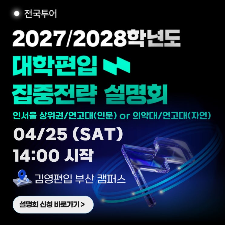 [김영편입학원 부산캠퍼스] 2027&2028 편입 합격의 전환점 5월! 4/25(토) 대학편입 집중전략 설명회 #의약대 #연고대 #인서울 #상위권 #편입합격 #설명회 #편입전략