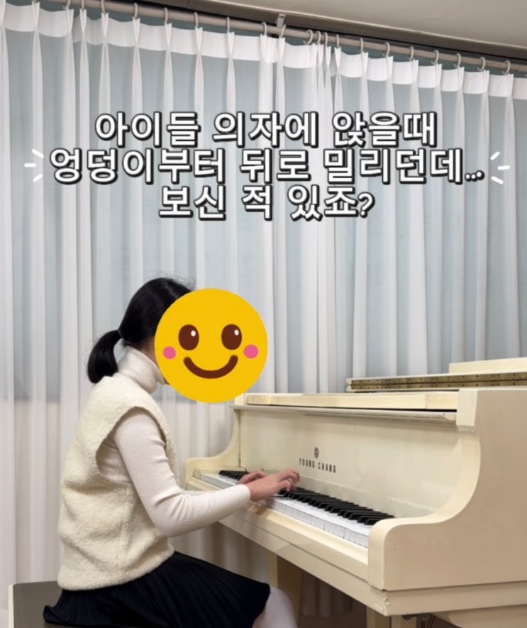 아이가 의자에 깊이 앉을수록 자세가 무너지는 이유 레슨을 하다 보면 아이들이 의자에 끝까지 깊게 앉아 연주하는 모습, 많이 보게 됩니다. 보기에 편해 보여서 “잘 앉았네”라고 생각하기 쉽지만 사실 아이 몸에는 전혀 편하지 않은 자세입니다. 의자에 깊이 앉으면 생기는 문제 아이들이 허벅지까지 의자 안쪽으로 들어가 앉으면 발바닥이 바닥을 제대로 밀지 못하게 됩니다. 이런 모습은 초등피아노 수업에서 특히 많이 나타납니다. 발이 지지를 못 하면 몸통이 불안정해지고 그 불안정을 어깨와 팔이 대신 버티게 됩니다. 이런 자세는 금강초 피아노, 사직동 피아노 아이들 레슨에서도 소리가 가볍고 몸이 흔들리는 원인으로 자주 연결됩니....... <img src="https://blogthumb.pstatic.net/MjAyNjAyMTFfMTMz/MDAxNzcwNzk4NTA4MTU4.zYazoYEkJizqh-LiFyhHu-1IB9ER0VVu5Diy9ZT18hQg.U5iFxGsOG-7rug_Z7NYItVtYX9jAcX9YQsvsLbCf9Sog.JPEG/IMG%A3%DF4916.jpg?type=s3" />