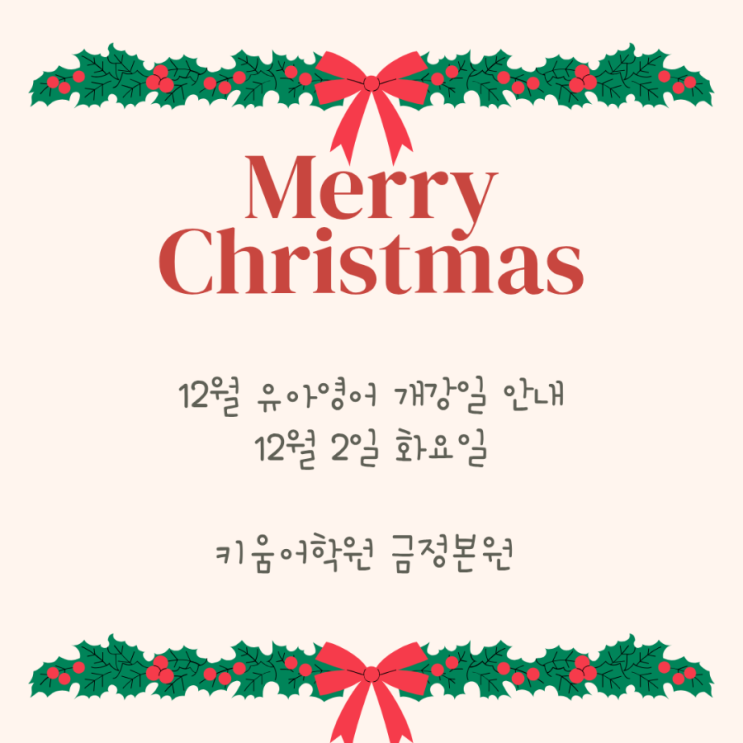 안녕하세요 키움어학원 금정본원입니다 벌써 설레는 12월이 성큼 다가왔습니다 ♡♡♡♡ 12월 유아영어 신입생 친구들을 기다립니다. 자세한 내용은 네이버 방문상담 예약으로 부탁드립니다 <img src="https://blogthumb.pstatic.net/MjAyNTExMjZfOTYg/MDAxNzY0MTAwMTg0OTIy.COCt4f6vzqHzDXiVtFT62hlXHDJSMFewGOkKbFQzvYsg.jsUvjeyFSf52z0Tcmwf6DGLjT5wKYlg1-I2ZqKB2418g.PNG/900%A3%DF%BA%A3%C0%CC%C1%F6%BB%F6_%B1%F2%B2%FB%C7%D1_%C5%A9%B8%AE%BD%BA%B8%B6%BD%BA_%C0%CE%BB%E7_%C0%CE%BD%BA%C5%B8%B1%D7%B7%A5_%C6%F7%BD%BA%C6%AE%A3%DF20251126%A3%DF044727%A3%DF0000.png?type=s3" />