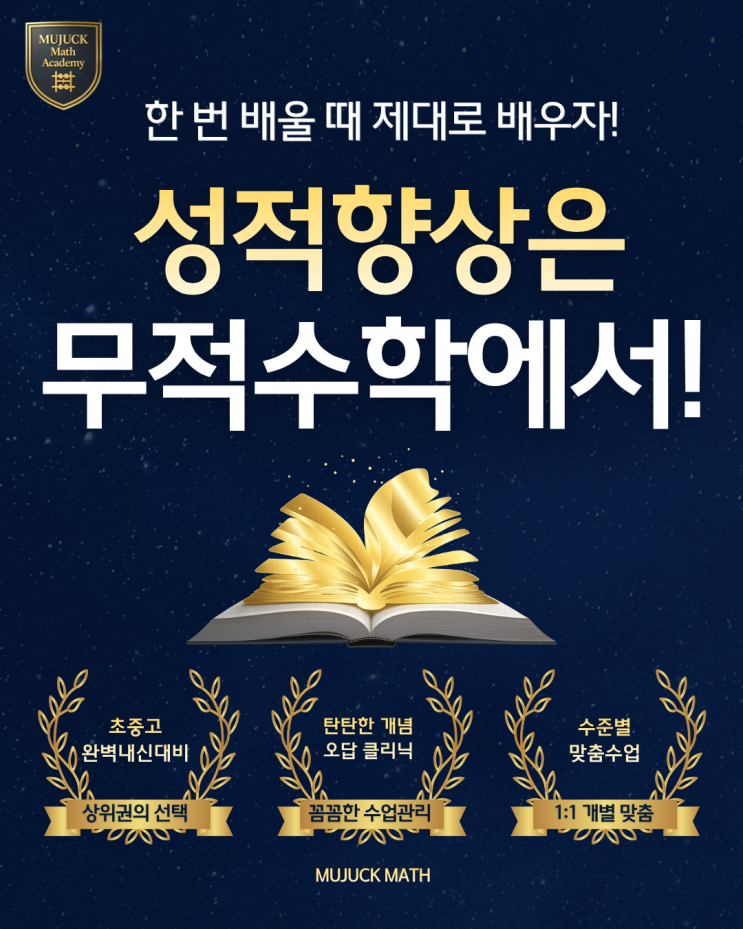 "중학교 첫 시험에서 당황하지 않으려면, 지금 알아두셔야 할 것들이 있습니다." 무적아카데미 무적수학전문학원 지난주에 상담 오신 어머니가 이런 말씀을 하셨어요. "초등 때는 수학 100점도 맞았는데, 중학교 가더니 갑자기 60점대가 나왔어요." 아이도 당황했고, 어머니도 많이 속상하셨대요. 저도 처음 이 일을 시작했을 때 몰랐어요. 초등과 중학교 수학 사이에 이렇게 큰 벽이 있을 줄은요. . 지금은 매년 이 시기가 되면, 꼭 먼저 말씀드리고 싶어져요. 초등 수학이랑 중학 수학, 뭐가 달라요? 중1 문제를 보여드리면 이렇게 말씀하세요. "문제가 이렇게 길어요?" "연산은 잘하는데 왜 이건 못 풀죠....... <img src="https://blogthumb.pstatic.net/MjAyNjAzMjZfNjQg/MDAxNzc0NTE1MjA5ODA3.R5qhYlhDw-FoBvV_TwuPNEFdd7cmgqamQB5pk5gvJrUg.7ypChubTCpceGgDRC0gTS41NgniG0LtuOJ9_1rZ0nlEg.PNG/%BC%BA%C0%FB_%C7%E2%BB%F3%C0%BA.png?type=s3" />