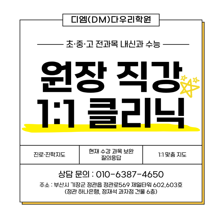 [부산정관] 진로진학지도부터 학습 보완까지, 원장 직강 1:1 클리닉