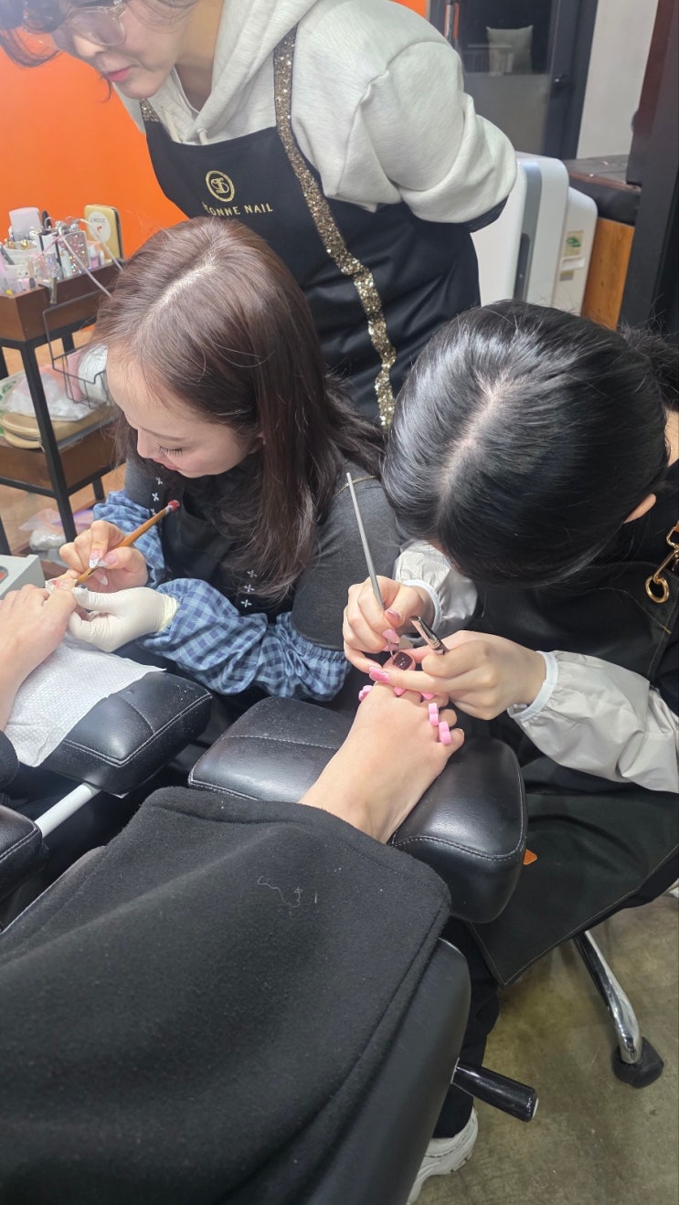 오늘은 페디실습 수업이 진행된 날이었어요 실제 모텔을 대상으로 꼼꼼하게 테크닉을 익히는 시간 사진에서도 느껴지듯이 집중도 높은 분위기 속에서 한동작, 한 터치까지 세심하게 체크하며 수업이 진행됩니다. ♥이론이 아닌 " 손에 익히는" 수업♥ ∨ 큐티클 정리 ∨ 브러쉬 각도 잡는 법 ∨ 컬러 밀착력 높이는 방법 ∨ 라인 번짐 없이 정교하게 표현하는 팁 단순히 보여주는 수업이 아니라 직접 해보고, 수정하고, 다시 잡아 주는 1:1 피드백 방식으로 진행 됩니다. 학생들으 표정에서 느껴지는 진지함 ♥ 그만큼 실력이 빠르게 성장하는 시간이에요 ★디테일이 실력을 만듭니다. 브러쉬를 잡는 힘 조절, 컬러 양 조절, 고객 발 각....... <img src="https://blogthumb.pstatic.net/MjAyNjAyMjdfMTk0/MDAxNzcyMTY1ODAyMTMy.vT98D3M56BirpKmT6dH3cVjoReNZU6y7n8yLELTkbIAg.h2TX5NfMi2qa5-ib7gfmEkqTkf9laiZbf24tVMHLaBYg.JPEG/KakaoTalk_20260227_131056871.jpg?type=s3" />