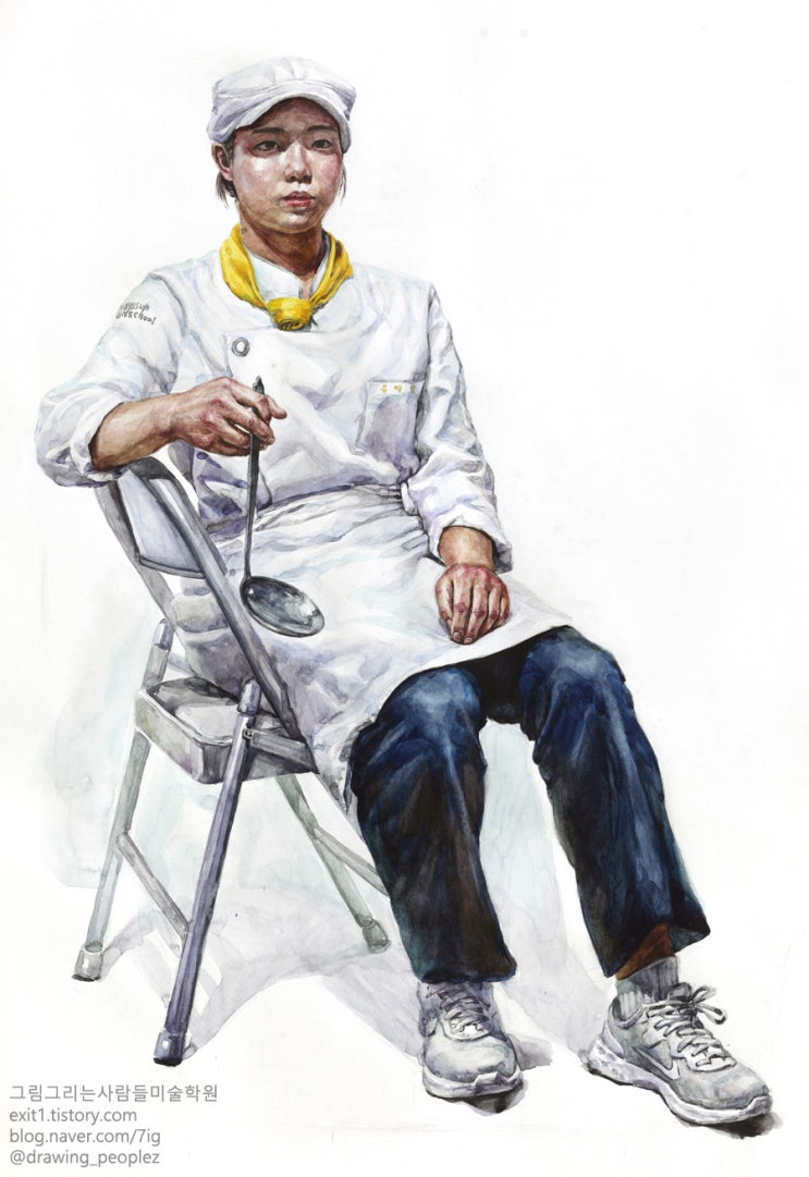 [인체수채화 / 학생작] 조리복을 입은 여성