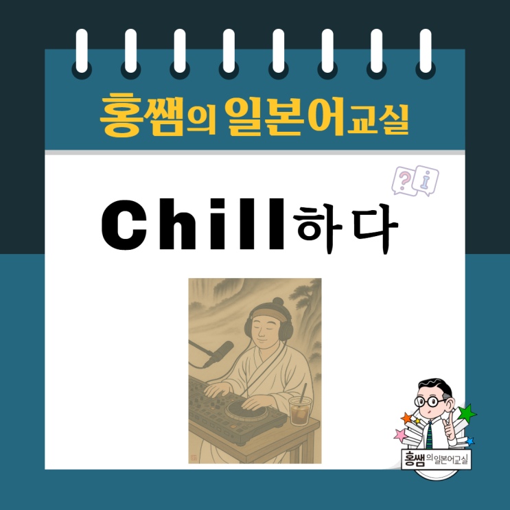 안녕하세요! 홍쌤입니다 오늘은 주로 멋쟁이들이 자주 쓰는 어휘! 신조어 'Chill 하다 (칠하다)'에 대해 알아봅니다 'チルい' (ちるい) * 어원?! 영어 'Chill (느긋하고 편안한 상태)'에서 동사화된 형태 일본어에서는 'チルい' 형용사로 사용! 모두 Chill한 봄날되시기 바래요~ 오늘도 읽어주셔서 감사합니다 : ) <img src="https://blogthumb.pstatic.net/MjAyNjAzMDZfMTg3/MDAxNzcyNzg4NTcxNDE5.2OBIslu2NsakgMHciR-6xlgAJNYYbwgQrpXCIP4JYJQg.e-oxjxeslsf-kDQi4zTxNYgu607mbONbgdmHZrKYah4g.PNG/%C4%A51.png?type=s3" />
