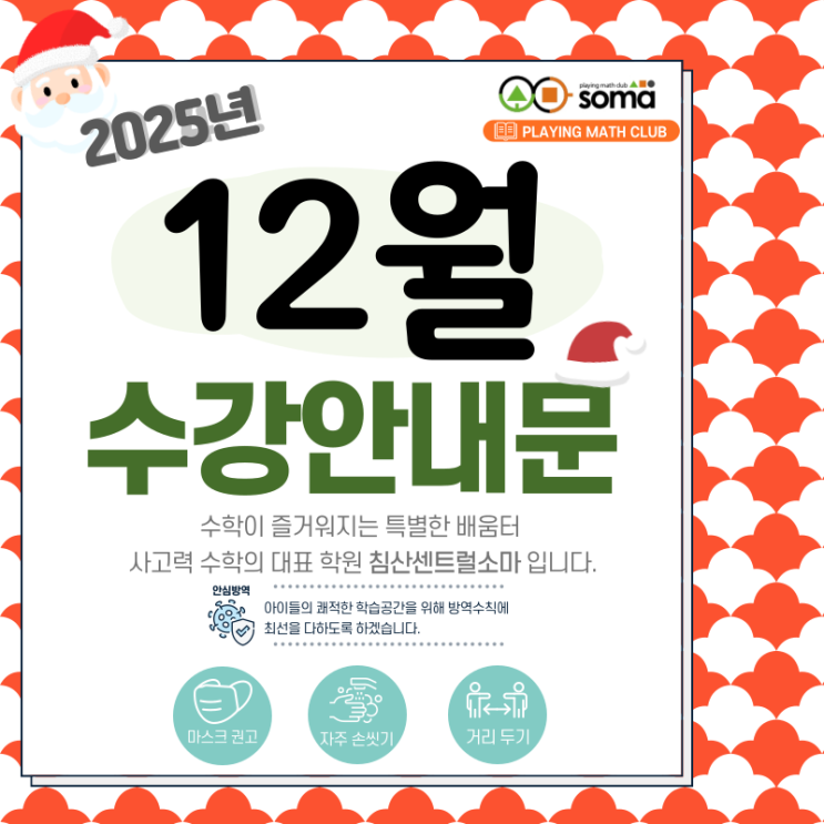 대구 북구 침산동 소마수학학원 ◈ 12월 수강안내문