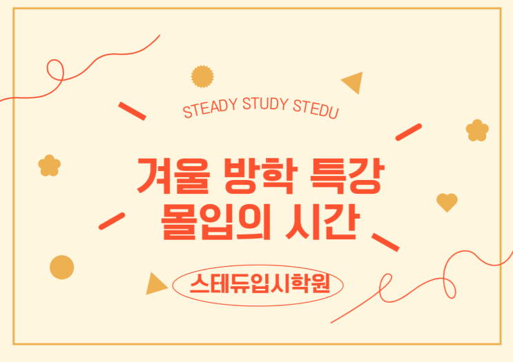 언제까지 진도만… 이제는 ‘스스로 몰입하는 시간’을 만들 때입니다 스테듀입시학원 1월 5일 개강 / 신청기간 ~ 2025년 12월 28일 안녕하세요, 스테듀입시학원입니다 오늘은 많은 학부모님과 학생들이 고민하는 “진도 중심 수업의 한계”에 대해 이야기해보려고 해요. 수학 공부에 정말 중요한 것이 무엇인지, 그리고 왜 ‘몰입의 시간’이 필요한지를 함께 살펴보겠습니다. 진도만 빠르게 나가는데… 왜 성적은 그대로일까? 학원을 다니는 대부분의 학생들이 이런 고민을 합니다. 수업에서는 이해한 것 같은데, 집에서 혼자 풀면 막힌다 배운 내용을 금방 잊어버린다 시험 기간만 되면 다시 개념부터 찾아봐야 한다 진도는 나가는데 실력은 쌓....... <img src="https://blogthumb.pstatic.net/MjAyNTEyMDlfMTIg/MDAxNzY1Mjc5MDQwMjIx.0z1YGw_qZu5LS28hAHiKlHUExa4Y-EuATuUKUOSilu8g.IR1xLLj6kMuNWmJMKVATR4RFQqXAbOPRT6fU4ZnNCHUg.PNG/%C1%A6%B8%F1%C0%BB_%C0%D4%B7%C2%C7%D8%C1%D6%BC%BC%BF%E4__%BA%B9%BB%E7%BA%BB_%281%29-001.png?type=s3" />