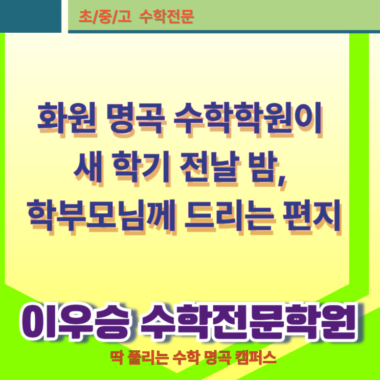 화원 명곡 수학학원이 새 학기 전날 밤, 학부모님께 드리는 편지