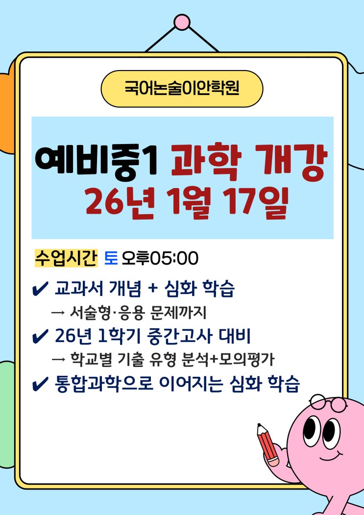 [예비중1 과학] 개강 안내 26년 1월 17일