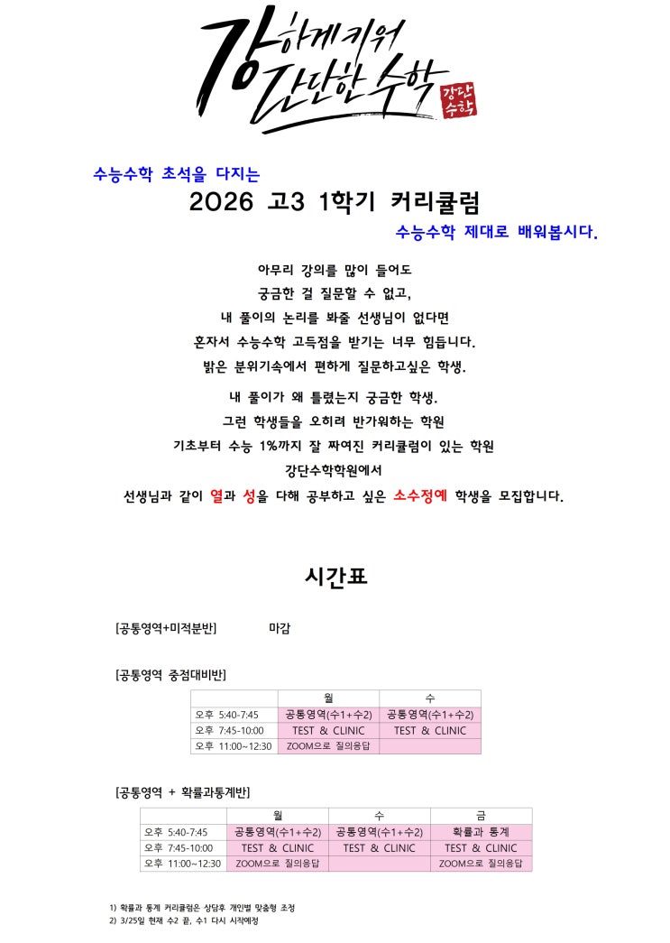 2026년 고3 1학기 커리큘럼 (3월24일 현재)