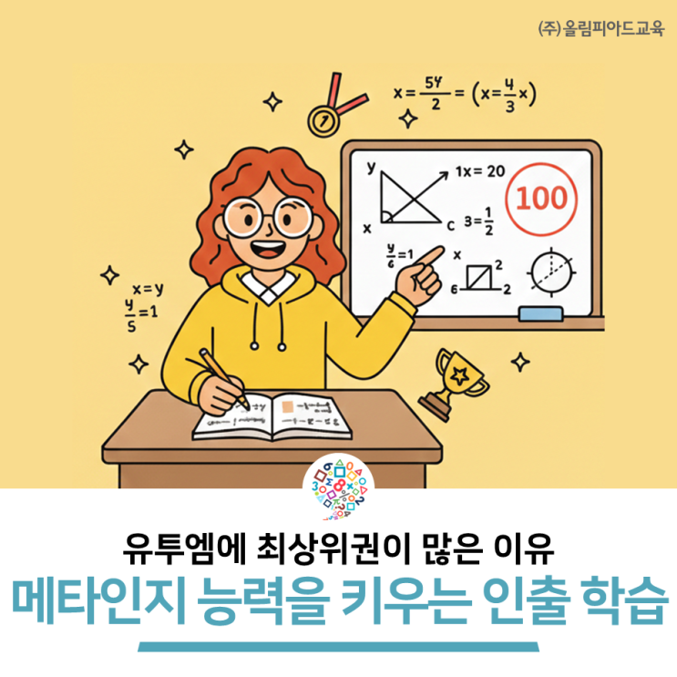안녕하세요. 올림피아드교육 유투엠(U2M) 수학학원입니다"공부는 많이 하는데 왜 성적은 공부한 만큼 오르지 않을까?" 많은 학생과 학부모님들이 자주 하는 고민입니다. 유투엠은 그 해답을 메타인지, 즉 '스스로 꺼내고 점검하는 공부법'에서 찾습니다. 오늘은 성적이 오르는 학생들의 공부 방식이 무엇이 다른지 함께 살펴보겠습니다. 공부량도 많고 책상 앞에 앉아 있는 시간도 긴데, 성적이 기대만큼 오르지 않는 학생들이 있습니다. 흔히 '노력은 하는데 왜 결과가 안 나오지?'라는 질문이 따라오곤 하죠. 여러 가지 이유가 있겠지만, 그중에서도 가장 큰 비중을 차지하는 것은 학습량이 아니라 학습 방....... <img src="https://blogthumb.pstatic.net/MjAyNjAyMTJfMTk2/MDAxNzcwODg3MzAwNjk2.gMMPU2_qiNNhIrwooMDBHGFN9dvI345lYs7dOS2d3Ycg.wci38q3T8HOV_xyCp9hNfWltE9uRaZ9ZLR5cfheONpsg.PNG/%C0%AF%C5%F5%BF%A5_%B8%DE%C5%B8%C0%CE%C1%F6.png?type=s3" />