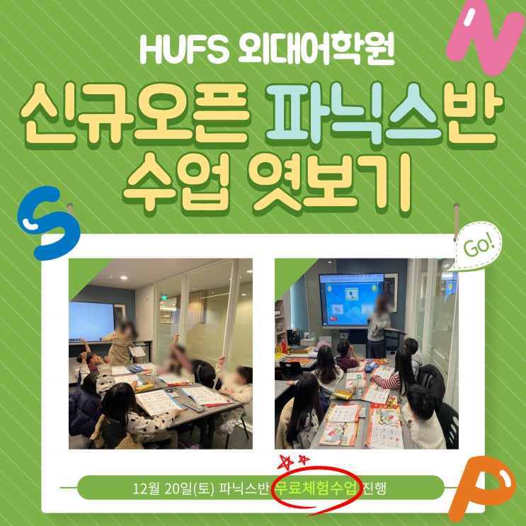 인천광역시 동부교육지원청 제 1170호 외대어학원 송도국제캠퍼스 교습과목 : 영어 안녕하세요. 송도 외대어학원입니다. 12월 파닉스반이 신규오픈 후 활발하게 수업이 진행중입니다. 오늘은 새롭게 개강한 파닉스반 학생들의 생생한 수업 모습을 보여드리려 합니다. 요즘 학부모님들께서 영어 첫걸음, 파닉스 시작 시기, 올바른 발음 교육을 많이 검색하시는데요. 외대어학원의 파닉스 Walk반 수업은 에너지가 넘치는 말하기 중심 수업, 그리고 소리 기반 학습으로 이루어집니다. 파닉스 Walk반 실제 수업 분위기 파닉스 수업 자체가 말하기(Speaking) 중심 수업이지만, 그보다도 선생님들의 재미고 열정적인 수업 스타일, 그리고 무엇보다 귀여....... <img src="https://blogthumb.pstatic.net/MjAyNTEyMDRfMTU5/MDAxNzY0ODM4NTMyMzY3.ePHU-nxczhM0UDQxhFs0CkM1uziSwwb6EPApFyjjkjYg.1x9rz3wRi2M3WqHb68L0JOh-g9em5PVX72esC1g2jpgg.JPEG/%C6%C4%B4%D0%BD%BA%BC%F6%BE%F7%BF%B3%BA%B8%B1%E2.jpg?type=s3" />