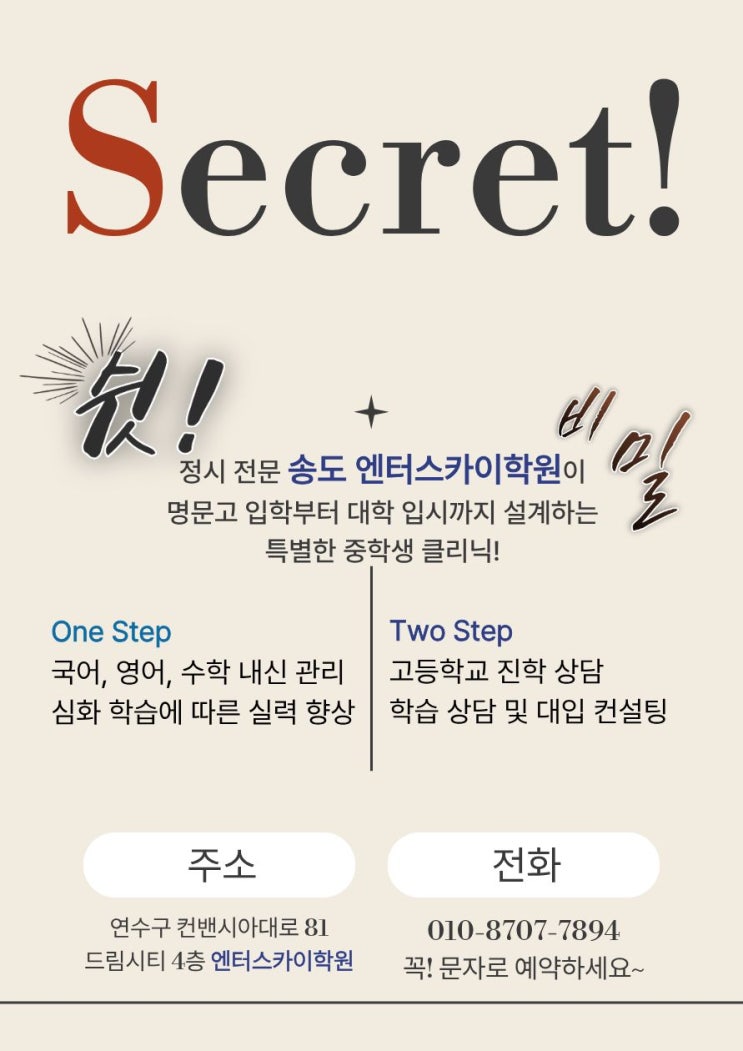 인천동부교육지원청 제3535호 (주)엔에스과학수학학원 안녕하세요. 엔에스과학수학입니다. 학부모님 오래 기다리셨습니다~ 예비중 1,2,3을 위하여 이번 겨울, 우리 학원 최강 드림팀과 함께 자녀의 성적 역전을 시작하세요! 수학 실력 향상과 더불어 과학까지 탄탄하게 다지고자 하는 학부모님들을 설명회에 초대합니다. 이번 겨울방학은 단순한 선행이 아닙니다. 자신감은 중학교때 만들어집니다. 수학/과학 두 마리 토끼를 잡는 결정적인 기회가 될 것입니다! 고등부를 대표하는 과학·수학 선생님들이 직접 중등 수업에 참여하고, 전체 커리큘럼 설계부터 수업 방향, 문제 구성까지 모두 함께 고민합니다. 고등부를 실제로 지도하며 입시 흐름....... <img src="https://blogthumb.pstatic.net/MjAyNTEyMDdfMTAw/MDAxNzY1MDczNDAyMjM0.c6WCCX2dHj35iYPFoZJVw1nLLNb8ZC5MU-SG0SAVaQcg.lUTIUIrw-OByn_cO0DTlddIPS2nJlj_4ZXwe_COMtksg.PNG/1.png?type=s3" />
