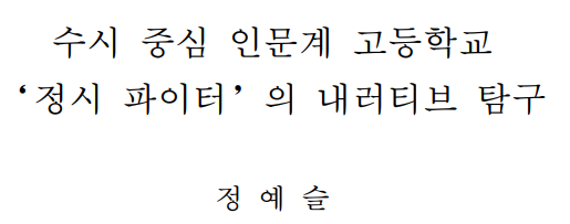 정예슬(2025), 수시 중심 인문계 고등학교 '정시 파이터' 의 내러티브 탐구