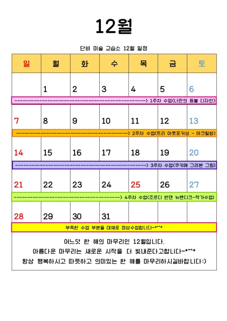 <동춘동미술> 12월 커리큘럼 알려드립니다~*^^*