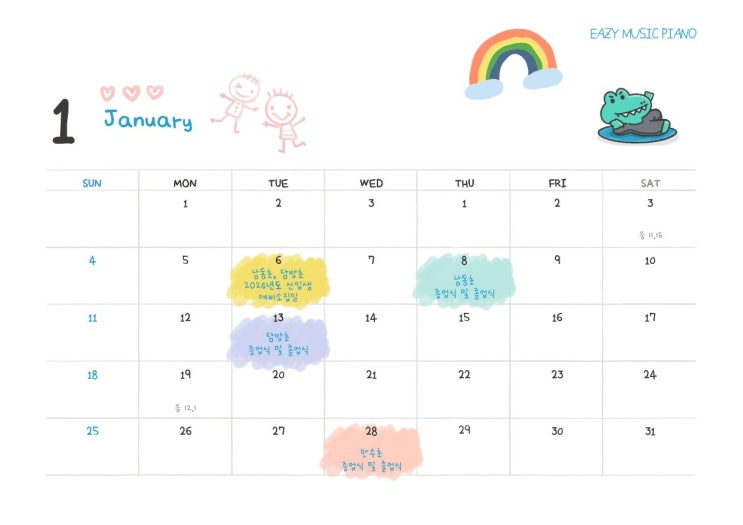 [만수동피아노학원/만수동음악학원] 만수동 이지음악학원 주변 초등학교 겨울방학 일정