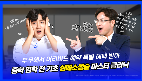 "중학 영어, 기초 없이 올라가면 100% 무너집니다!" 많은 학부모님이 "입학하고 3월부터 시작해야지"라고 생각하시지만, 그때는 이미 학교 진도를 따라가기에도 벅찬 시기입니다. 진짜 승부는 '1월'에 시작됩니다. 12월에 미리 준비하고 1월부터 본격적인 중학 영어를 시작해야, 3월 새 학기에 웃으며 적응할 수 있습니다. [얼리버드 예약 특별 혜택] 이번 모집 기간(12/5~12/24)에 미리 등록하는 학생에게는 아주 특별한 시간을 선물합니다. 초등 영어 긴급 점검 & 1:1 과외식 보강 무료 지원(現대학교수 직강) 정규 수업 전, 구멍 난 초등 필수 어휘와 문법을 완벽하게 메워드립니다. [모집 안내] 대상....... <img src="https://blogthumb.pstatic.net/MjAyNTEyMDVfNzMg/MDAxNzY0OTEzMTAyMzEy.K0e41BrvPpjPbkW5LhVinhgEhTovwUwEXXskHwRaITsg.W6ECwD2hjx4DJjcMrSqGm30I0EJEOqXsFQwCaT-3MKEg.PNG/1010.png?type=s3" />