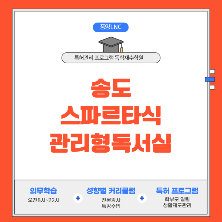 안녕하세요 송도 관리형독서실 중앙LNC입니다 벌써 수능이 끝나고 12월이 되면서 겨울방학을 코앞에 두고 있는데요 계획 없이 보내면 금방 지나가 버리고 고등학생 자녀들은 금방 하루 리듬이 무너지고 학습 템포가 흐트러지게 되는데, 성적 격차가 벌어지는 것도 대부분 이 시기를 거치면서 발생하게 됩니다 때문에 오늘은 방학동안 아이가 흔들리지 않도록 출결·학습량·계획을 스파르타식으로 관리를 해드리는 저희 송도 중앙LNC 관리형독서실 체계에 대해 간단히 소개드려보려 합니다! [중앙LNC 윈터스쿨] 1월 2일(금요일)개강 현재 접수중 자동관리 시스템-보니아라 노트 관리형독서실을 떠올리면 대부분 관리자가 돌아다니면서 학생들을 케....... <img src="https://blogthumb.pstatic.net/MjAyNTEyMDdfMTIz/MDAxNzY1MDk0NzM4MjAw.U4enfrf5oAZGMsZpGvRW09wM2eke7dY21hOTlWhVkrwg.kM1e_BXfXGD1ro0cxvkLPwKGvWUMZPmdneLDo8QBe7sg.PNG/%C1%A6%B8%F1%C0%BB_%C0%D4%B7%C2%C7%D8%C1%D6%BC%BC%BF%E4._%287%29.png?type=s3" />