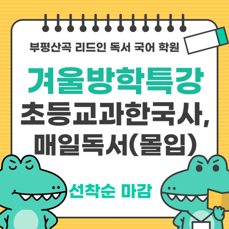 “5학년 한국사 대비, 초4 겨울방학에 꼭 해야 할 선행 공부” 왜? 한국사는 초4 겨울부터 시작해야 할까? [학습 격차 막는 리드인 특강] 혹시 이런 고민 있으신가요? “중학교 역사, 어렵다던데… 우리 아이는 괜찮을까?” “학교에서는 너무 간단하게 배우던데, 기초가 부족한 건 아닐까?” “시험 대비는 어떻게 해야 하지?” 한 번쯤 마음속으로만 고민해 보셨죠. 부모님들의 그런 마음을 누구보다 잘 알고 있습니다. 그래서 올해 겨울방학, 부평 산곡 리드인 독서 국어 학원에서는 "초4 전용 ‘한국사 흐름 잡기 특강"을 준비했습니다. 왜 초4 겨울방학부터 ‘한국사’를 시작해야 할까요? 초등 5학년이 되면 처음으로 한국사를 배....... <img src="https://blogthumb.pstatic.net/MjAyNTEyMDhfODUg/MDAxNzY1MTc3MTU2ODY2.dii17_ncOldOtnS_O_oVLGzRIUMW9CMEsFywhpXCKJsg.ym4BT8frArquDduzk35wu6u-XpdI2UVI_EDAc2lyjMUg.JPEG/%C1%A6%B8%F1%C0%BB_%C0%D4%B7%C2%C7%D8%C1%D6%BC%BC%BF%E4_-001_%283%29.jpg?type=s3" />