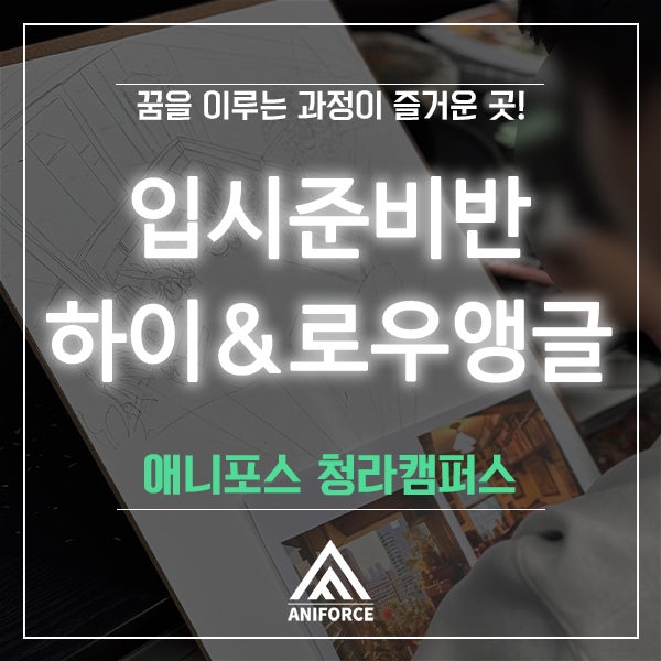 당신의 꿈을 이뤄 줄 만화학원 애니포스 청라캠퍼스 안녕하세요 #인천만화학원 의 중심, 청라 #애니포스 만화학원입니다✨ 오늘 소개해 드릴 수업은 입시준비반의 하이앵글&로우앵글 수업입니다! ️ 한 장의 방 사진을 가지고 두가지 시점의 앵글을 그려보는 수업을 진행했습니다. 그럼 지금 바로 집중력 불타는 수업현장으로 가보겠습니다! 투시를 이용한 배경 그리기는 아무리 연습해도 늘 어려운 부분이죠 그래서 같은 자료를 가지고도 하이앵글 / 로우앵글 서로 다른 시점으로 반복해서 그려보며 배경 구도를 바라보는 시야를 넓히는 데 집중했습니다. 한 가지 구도에만 익숙해지지 않도록 공간을 다양하게 해석하고 응용할 수 있....... <img src="https://blogthumb.pstatic.net/MjAyNjAyMDNfOTIg/MDAxNzcwMTE0ODA5Nzk4.R7ANtcBAOo2CDxBB_FXlDXnR0uud0QDrj6ZtwZSCTHAg.9l85pxOtU1d8B8JTGttqwkomfzlsfljBtS_TIelkYywg.JPEG/%BD%E6%B3%D7%C0%CF.jpg?type=s3" />