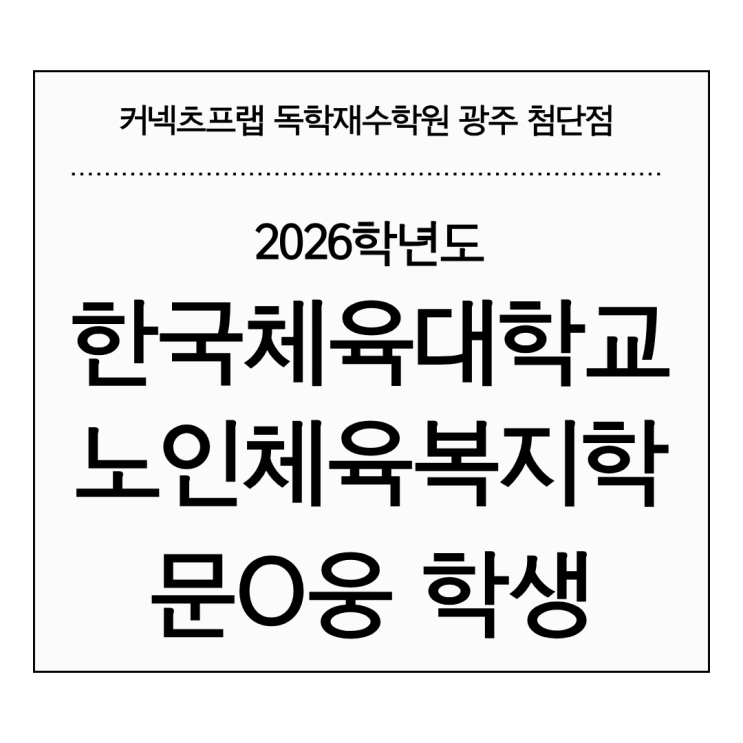 [2026학년도 한국체육대학교 노인체육복지학과 문O웅 학생 커넥츠프랩 광주 첨단 독학재수학원]