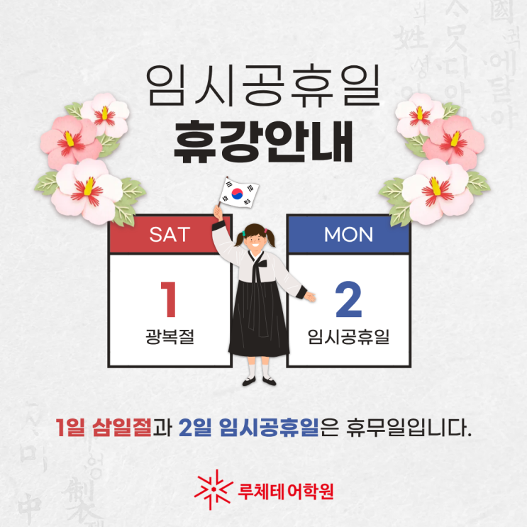 울산 무거 루체테어학원 광복절 임시공휴일 휴무 안내